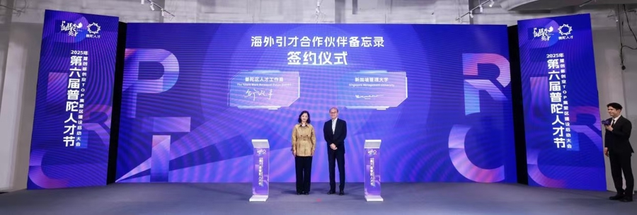 今年以来,在市委人才办、市人才工作局的指导下,普陀区持续发力,不断拓宽海外引才工作网络:7月揭牌成立了“新加坡海外人才工作站”,与中国新加坡商会联合举办“链全球:可持续发展论坛”,开辟了“海聚大赛”新加坡赛事并推荐4名人才进入总决赛,与南洋理工大学开展跨国青年实习,相关工作荣获 “海外拓展奖”。现场,普陀海外“朋友圈”又增加一位生态合作伙伴,普陀区人才工作局与新加坡管理大学签署合作备忘录,将围绕跨境实习实践、人才创新创业、人才交流培养等多个维度开展深度合作,实现国际人才资源与普陀产业发展的互利共赢。